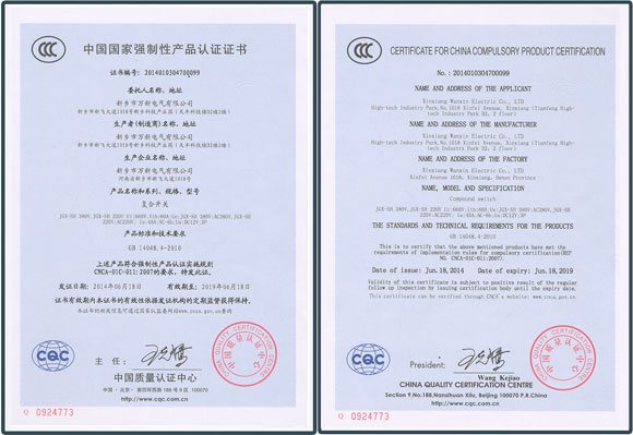 熱烈祝賀我公司復(fù)合開關(guān)JGX-SH 380V/220V系列CCC認證成功